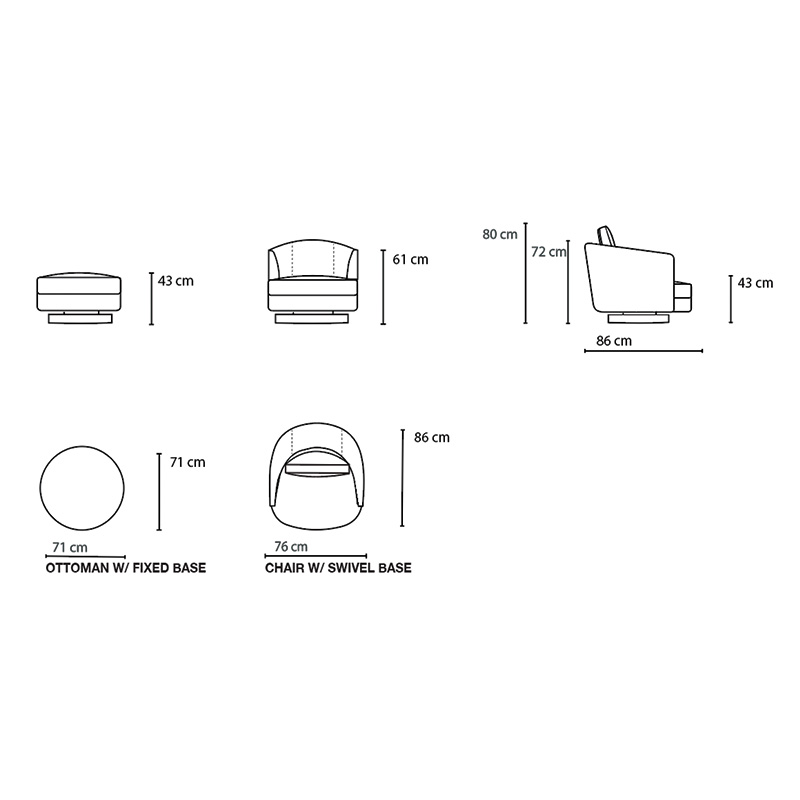 BASE : Swivel mechanism and plastic glide.